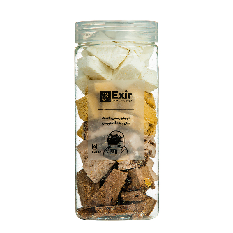 این محصول اکسیر انتخابی مناسب برای افرادیست که برای بار اول میخواهند بستنی فضانوردی را امتحان کنند.بستنی خشک مخلوط ثابت اکسیر در سایز بزرگ شامل پنج طعم بستنی ساده انبه، هندوانه، طالبی، نارگیل، بلوبری و در سایز متوسط شامل هندوانه، بلوبری، انبه میباشد.