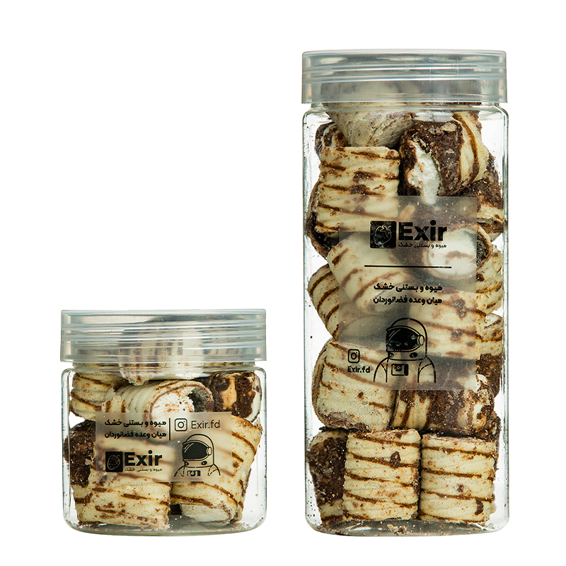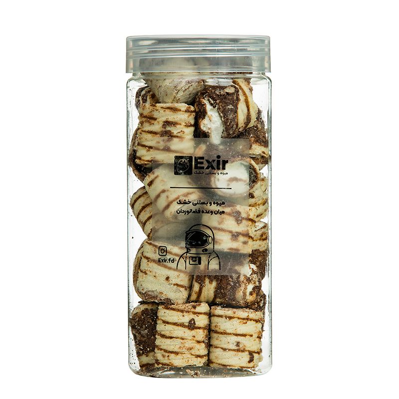 بستنی خشک بیسکورول، تولید شده از قطعههای خرد شده بستنی بیسکورول و بدون هیچگونه مواد افزودنی.