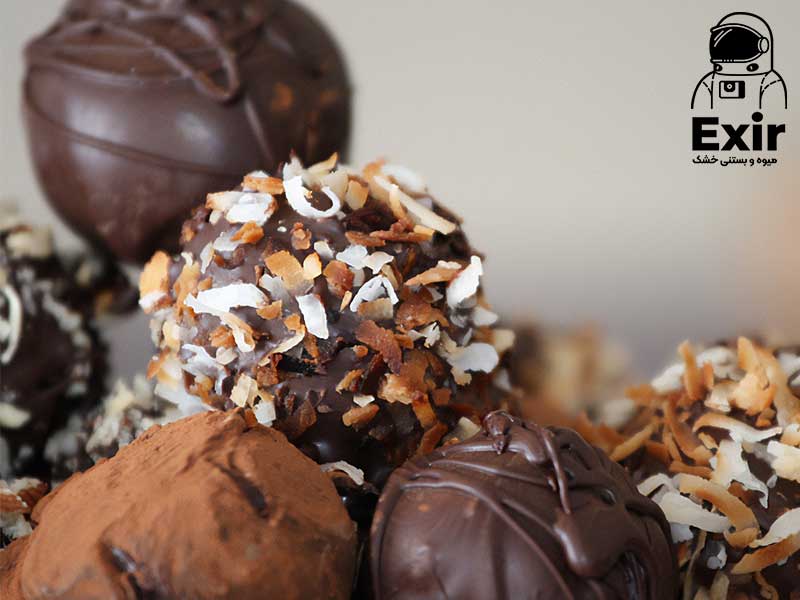 - ترافل نارگیل: افزودن خامه نارگیل یا خلال نارگیل به گاناش و غلتاندن ترافل در پودر نارگیل باعث ایجاد طعمی گرمسیری و خوشعطر میشود.